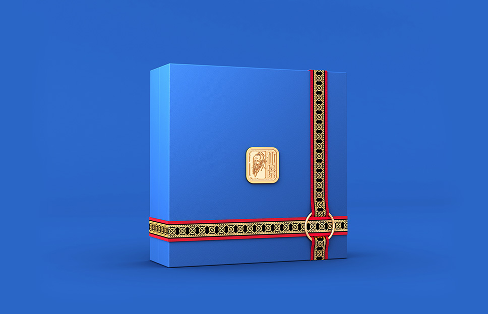 我們的禮盒創意是以玉璧禮天、玉琮禮地,以禮天下的設計理念。絲帶代表二龍,象征禮物至尊至重,金環象征“玉璧”,自古貴族多將玉璧作為饋贈之物、相見之禮,表示祝賀吉祥。里面的包裝取自玉琮造型,古代帝王以玉琮禮地,以示感恩大地對人類的自然饋贈。十字穿環是從伏羲女媧、二龍穿璧演化而來的,也是我們仲景品牌獨有的文化符號。寓意避除不祥、化育萬物,象征健康無限,財富延綿不斷。