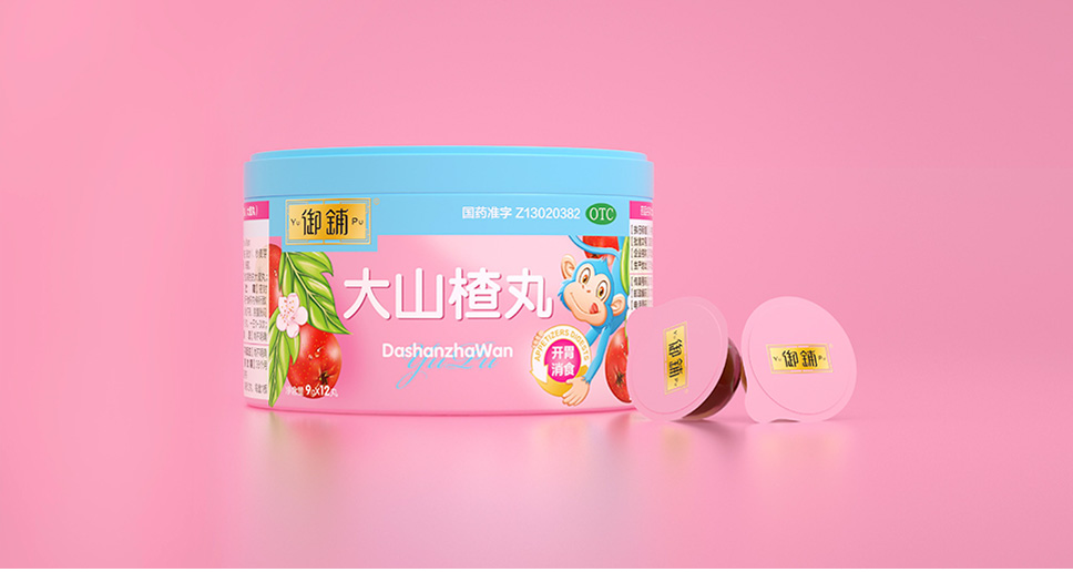 李華清在包裝形式上,采用了果凍盒形式,果凍在市場(chǎng)上比較常見(jiàn),能夠引起消費(fèi)者共識(shí),在人們心里已經(jīng)有了很深的印象,借助“果凍”在消費(fèi)者心里的認(rèn)知,借鑒其創(chuàng)意點(diǎn),增加大山楂丸在醫(yī)藥銷(xiāo)售渠道中的新奇點(diǎn)。這種形式給產(chǎn)品提供了便利的食用方式,也能便于攜帶,同樣讓兒童產(chǎn)生一定的興趣,包裝形式創(chuàng)新,為御鋪打造全新設(shè)計(jì)理念,建立了品牌差異化。