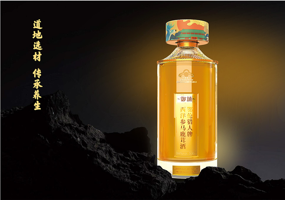 李華清在瓶口的圖案中做了創(chuàng)意,其中提煉的馬鹿茸,西洋參元素是中醫(yī)藥的珍品,能夠體現(xiàn)產(chǎn)品價(jià)值屬性;提煉的祥云、水紋元素在傳統(tǒng)元素寓意祥瑞之云氣,表達(dá)了吉祥、喜慶、幸福的愿望以及對(duì)生命的美好向往,同時(shí)也象征御鋪為人們帶來(lái)健康美好的希冀。