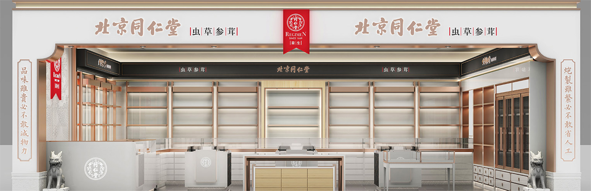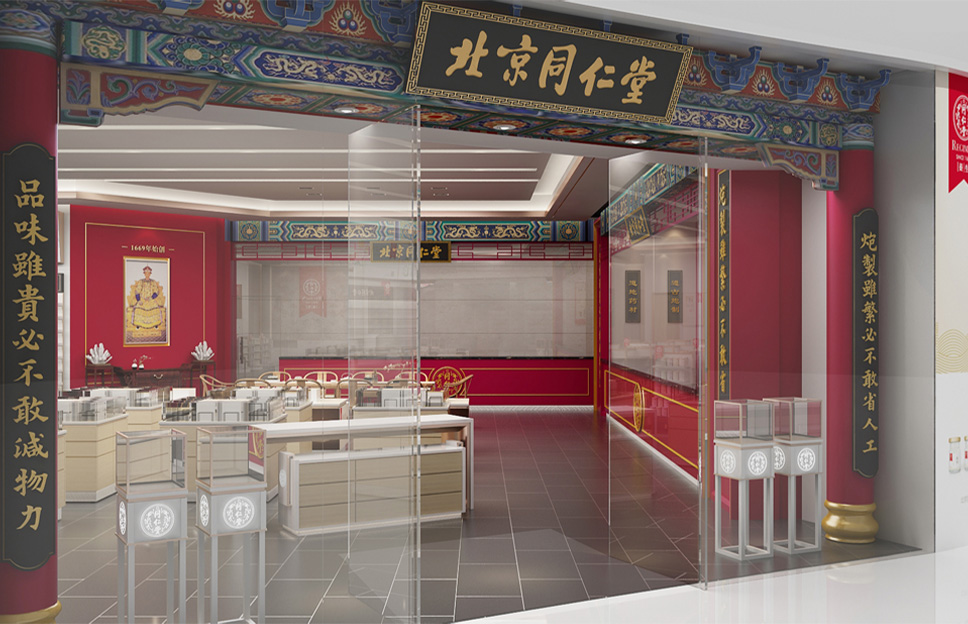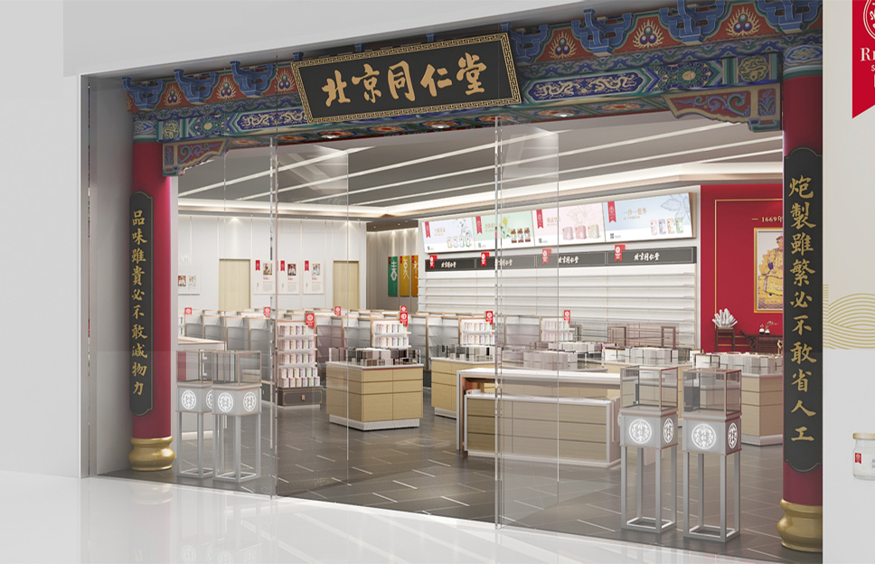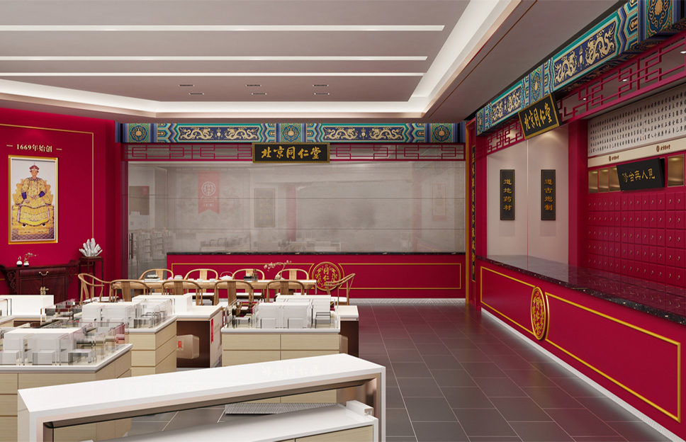 在定位設(shè)計(jì)北京同仁堂專柜形象之前,我們做了深入細(xì)致的市場調(diào)研,同時(shí)對同仁堂的文化進(jìn)行了系統(tǒng)研究,尋根溯源,找到了同仁堂文化的根源,即儒家“仁義”文化。同仁堂創(chuàng)始人為樂顯揚(yáng),樂族姓氏源于官位,出自西周初期官吏大樂正,負(fù)責(zé)整個(gè)王朝的禮教之事。而儒家文化的核心是“禮樂仁義”,李華清項(xiàng)目團(tuán)隊(duì)在同仁堂原有的文化基礎(chǔ)上加上了“禮樂”,使同仁堂文化更系統(tǒng)完整,同時(shí)把藥店空間設(shè)計(jì)專柜系列命名為“禮器之重”。