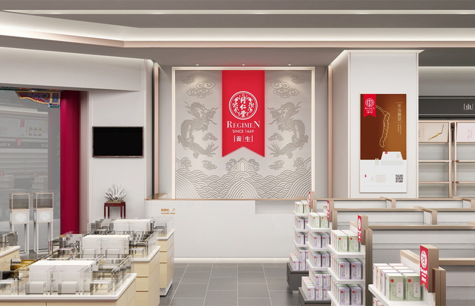 隨著更多年輕人對養(yǎng)生的意識(shí)越來越強(qiáng),必須要適應(yīng)他們的消費(fèi)習(xí)慣,而門店終端形象直接就影響著商品的成交率。于是為了迎合當(dāng)下時(shí)代的發(fā)展,提升年輕市場的占比,我們在升級(jí)了養(yǎng)生專柜后,對同仁堂參茸蟲草專賣店也進(jìn)行了重新開發(fā)升級(jí)。
