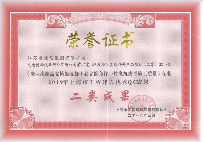太倉博澤項目獲得2019上海市QC二類成果獎