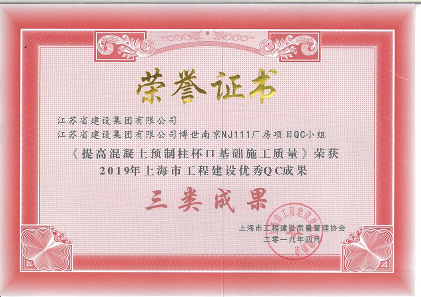 南京博世項目獲得2019上海市QC三類成果獎